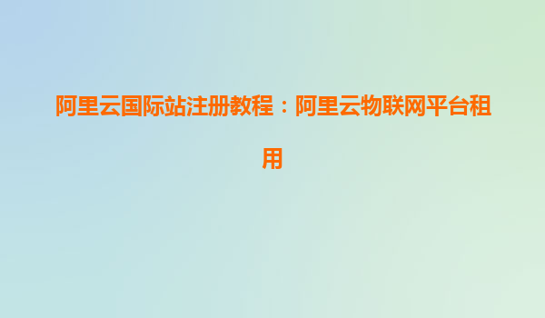 阿里云国际站注册教程:阿里云物联网平台租用