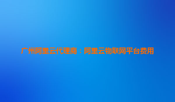 2. 广州阿里云代理商提供的物联网平台费用方案