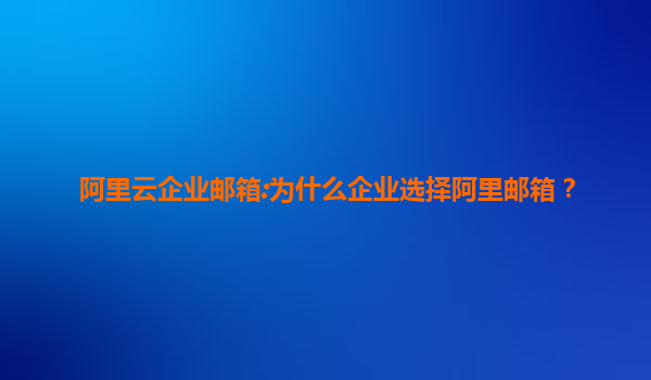 在数字化转型的浪潮下,企业邮箱不仅是沟通工具,更是企业形象、数据安全和协作效率的核心载体。阿里云企业邮箱凭借其稳定、安全、智能等特性,已成为众多企业的首选解决方案。