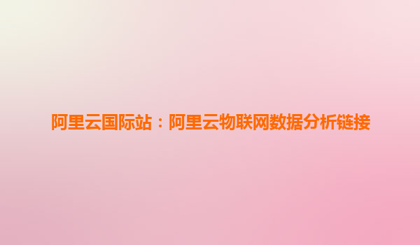 阿里云国际站:阿里云物联网数据分析的卓越优势