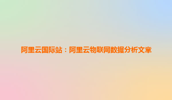 阿里云国际站:阿里云物联网数据分析——赋能企业数字化升级的核心引擎