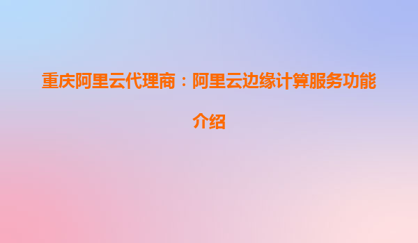 重庆阿里云代理商:阿里云边缘计算服务功能介绍
