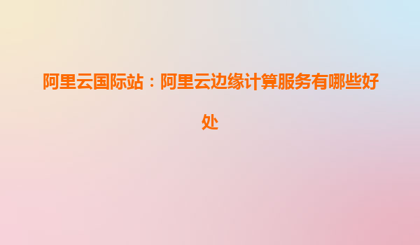 阿里云国际站:阿里云边缘计算服务有哪些好处