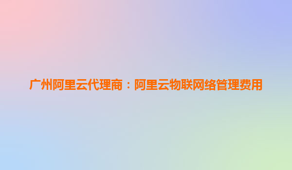 标题“广州阿里云代理商:阿里云物联网网络管理费用”包含以下几个核心内容: