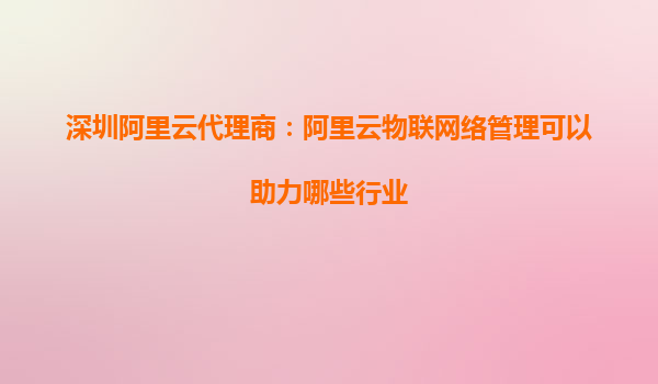 深圳阿里云代理商:阿里云物联网络管理助力多行业智能化升级