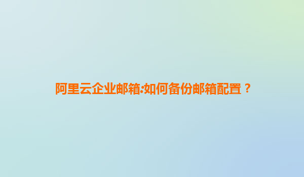 阿里云企业邮箱:如何备份邮箱配置及产品优势解析