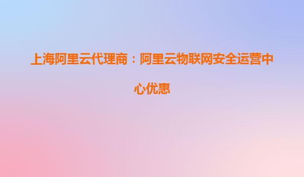 阿里云物联网安全运营中心:上海代理商的优选方案