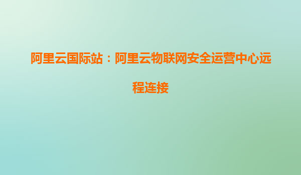 阿里云物联网安全运营中心远程连接:打造全球化安全防护体系的云端解决方案