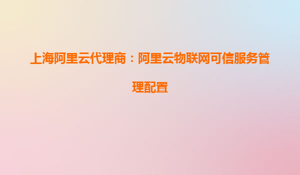 上海阿里云代理商:阿里云物联网可信服务管理配置详解