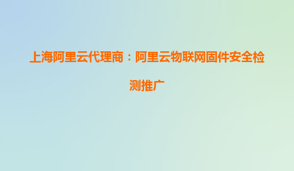 上海阿里云代理商:阿里云物联网固件安全检测推广