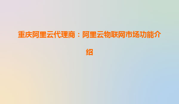 重庆阿里云代理商:阿里云物联网市场功能介绍