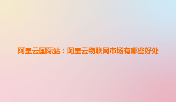 阿里云国际站:阿里云物联网市场带来的核心优势
