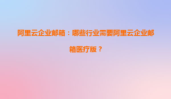 阿里云企业邮箱:哪些行业需要阿里云企业邮箱医疗版?