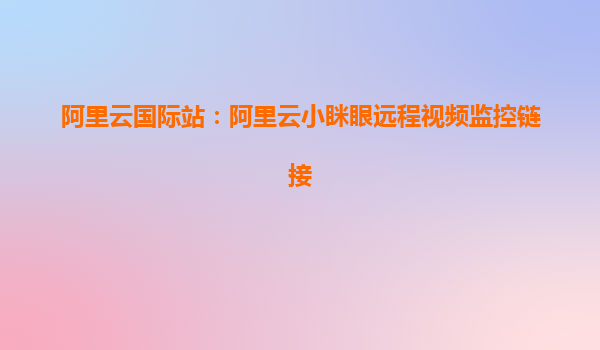 阿里云国际站:阿里云小眯眼远程视频监控的领先优势