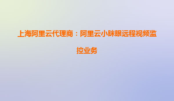 上海阿里云代理商:阿里云小眯眼远程视频监控业务