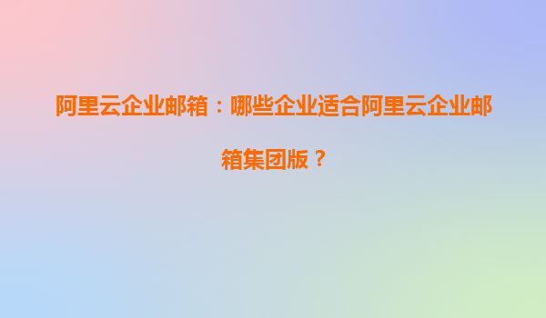 阿里云企业邮箱集团版:哪些企业适合选择?