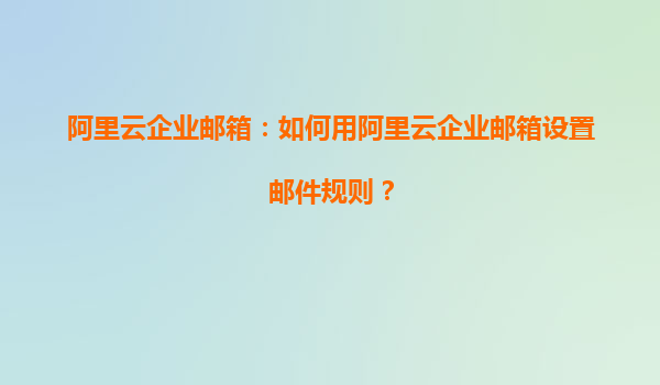 阿里云企业邮箱:如何用阿里云企业邮箱设置邮件规则