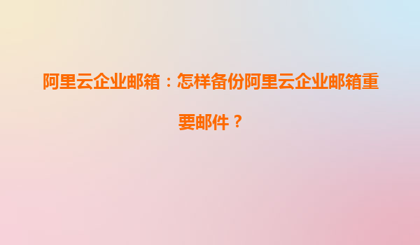 阿里云企业邮箱:怎样备份阿里云企业邮箱重要邮件?