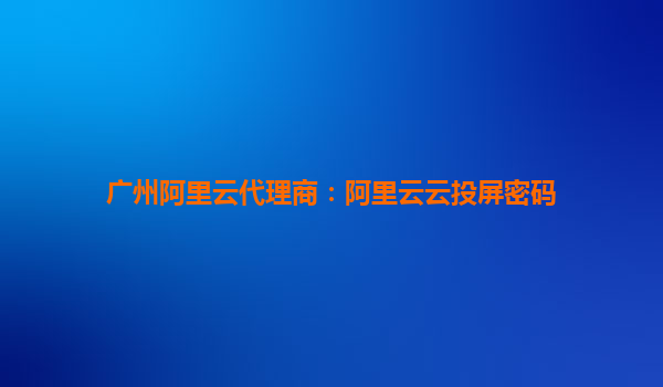 广州阿里云代理商:阿里云云投屏密码解析与阿里云优势全览