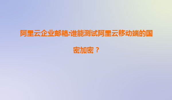 阿里云企业邮箱:谁能测试阿里云移动端的国密加密?