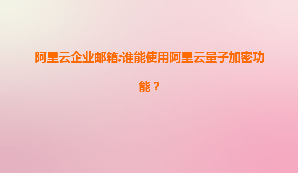 阿里云企业邮箱:谁能使用阿里云量子加密功能?