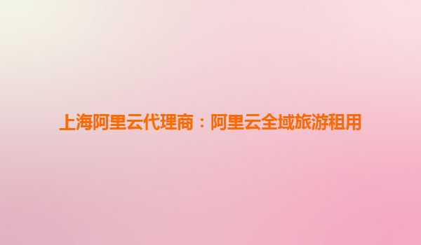 上海阿里云代理商:阿里云全域旅游租用解决方案
