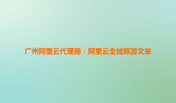 广州阿里云代理商:阿里云全域旅游解决方案的深度解析
