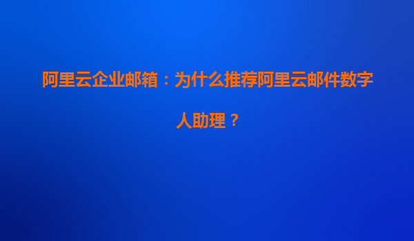 阿里云企业邮箱:为什么推荐阿里云邮件数字人助理?