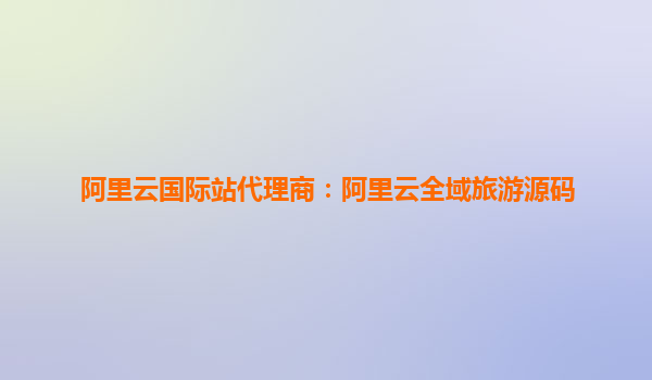 阿里云国际站代理商:阿里云全域旅游源码解决方案