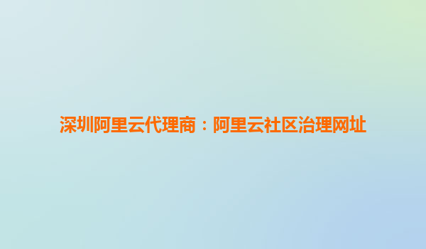 标题“深圳阿里云代理商:阿里云社区治理网址”包含两个核心信息点:深圳阿里云代理商和阿里云社区治理网址。前者代表阿里云在深圳地区的本地化服务支持,后者则指向阿里云生态中的社区治理功能。两者结合,体现了阿里云通过本地代理商为用户提供技术支持和资源整合的能力。