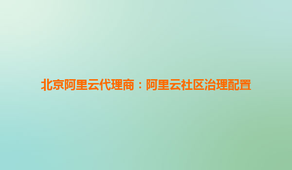北京阿里云代理商:阿里云社区治理配置的核心优势与实践