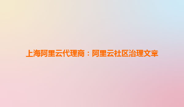 上海地区的代理商不仅是阿里云服务的销售渠道,更是本地化技术支持的桥梁。他们提供定制化解决方案,帮助客户在社区治理中实现: