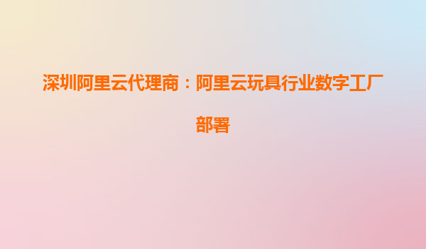 深圳阿里云代理商:阿里云玩具行业数字工厂部署