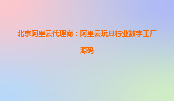 北京阿里云代理商:阿里云玩具行业数字工厂源码解析与优势