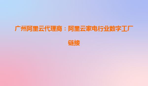 广州阿里云代理商:阿里云家电行业数字工厂解决方案