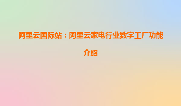 阿里云家电行业数字工厂:驱动智能制造新未来