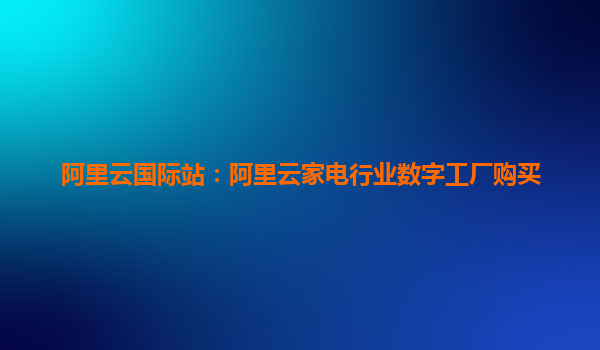 阿里云国际站:阿里云家电行业数字工厂解决方案