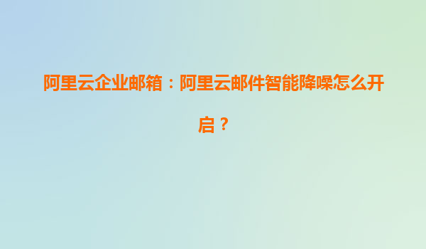 阿里云企业邮箱:阿里云邮件智能降噪怎么开启?