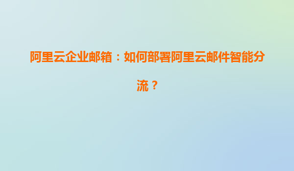 阿里云企业邮箱:如何部署阿里云邮件智能分流?