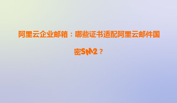 阿里云企业邮箱:哪些证书适配阿里云邮件国密SM2?