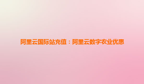 阿里云国际站充值:数字农业优惠助力产业升级