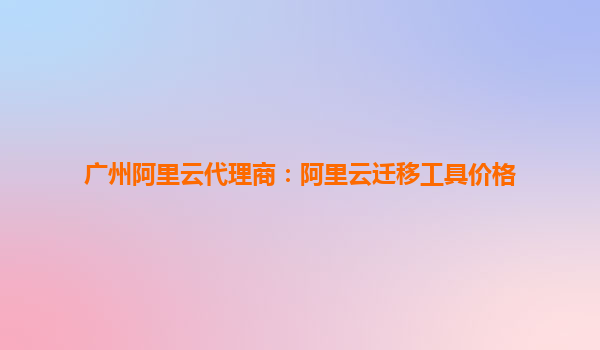 广州阿里云代理商:阿里云迁移工具价格解析与优势详解