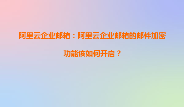阿里云企业邮箱:邮件加密功能详解与开启指南