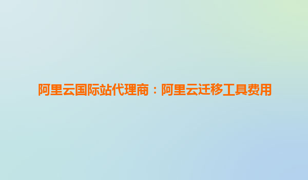 阿里云国际站代理商:阿里云迁移工具费用详解