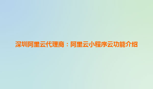 深圳阿里云代理商:阿里云小程序云功能介绍