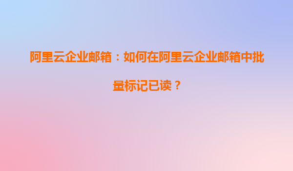 阿里云企业邮箱:如何在阿里云企业邮箱中批量标记已读?