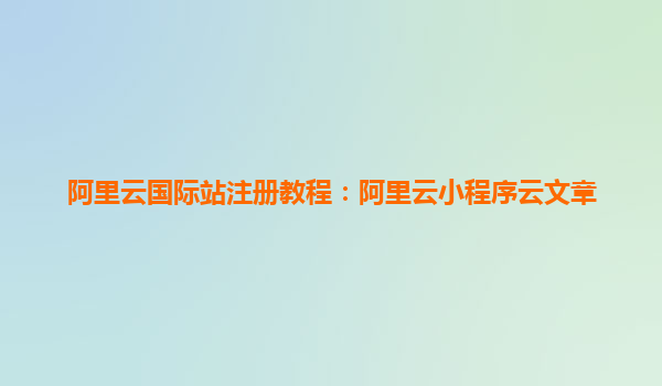 阿里云国际站注册教程:阿里云小程序云完整指南