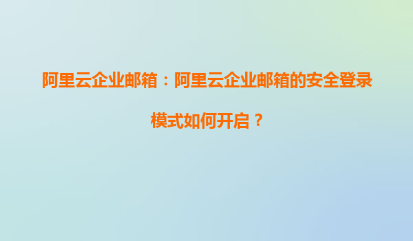 阿里云企业邮箱:如何开启安全登录模式?兼谈与代理商的协同优势