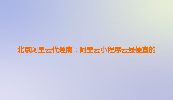 北京阿里云代理商:阿里云小程序云最便宜的解决方案解析