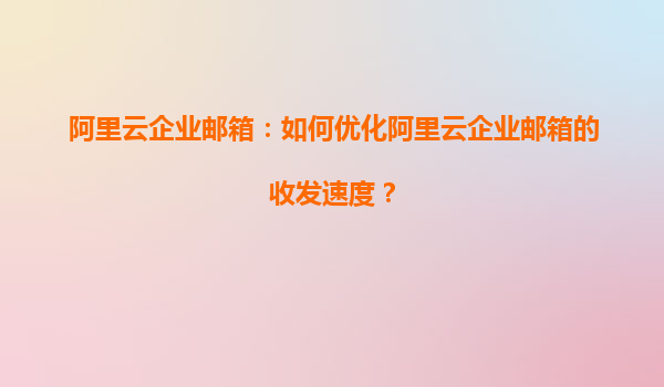 阿里云企业邮箱:如何优化阿里云企业邮箱的收发速度?